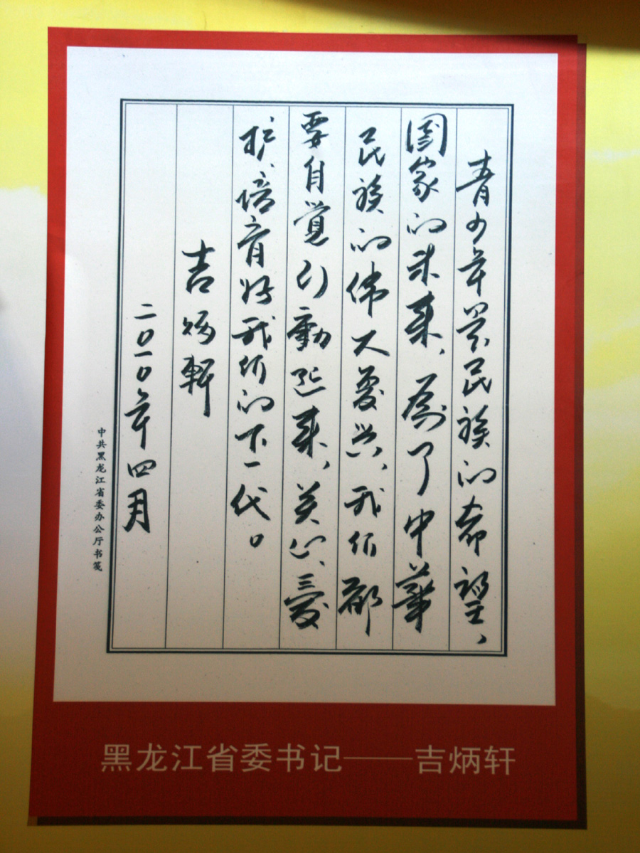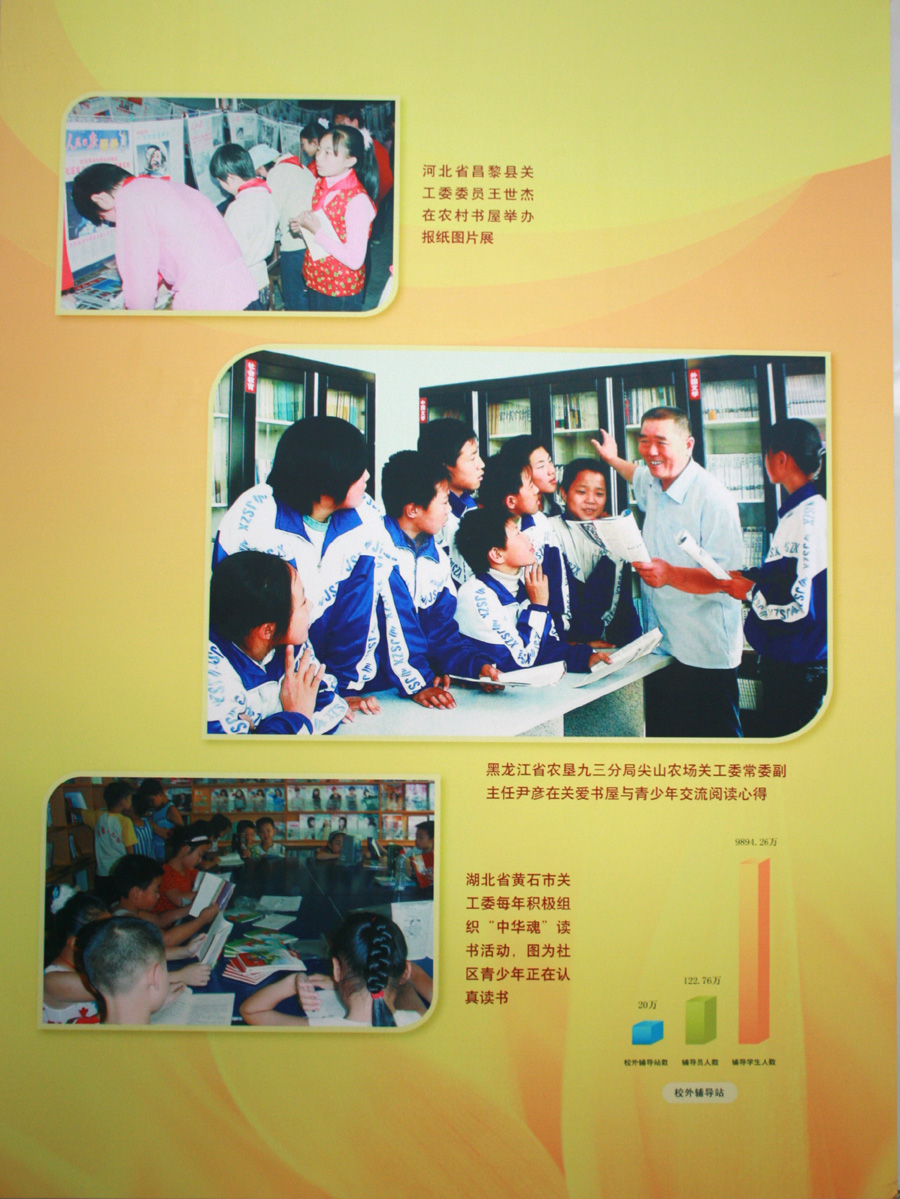 《全国关心下一代工作二十年回顾展》国家综合展厅展出的黑龙江省部分图片及实物