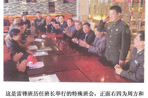 周方和说,我虽然当过雷锋班的班长,在雷锋生前连又当过排长和副指导员,但对雷锋精神的感悟也是逐步深化的。特别是这次参加了学雷锋系列活动,对雷锋精神的认识又有了新的升华。雷锋精神是一个时代的产物。在雷锋的年代产生了雷锋,在此后的波澜壮阔的岁月转换中,在翻天覆地的社会变革中,一批又一批与雷锋具有同样精神内核的人们,把社会的价值呼唤、时代的道德理想,以全新的形式赋予“雷锋”,让雷锋精神成为一个与时俱进的精神标杆。正是这种与时俱进,才使雷锋精神成为最闪耀的星辰,成为最鲜艳的旗帜。