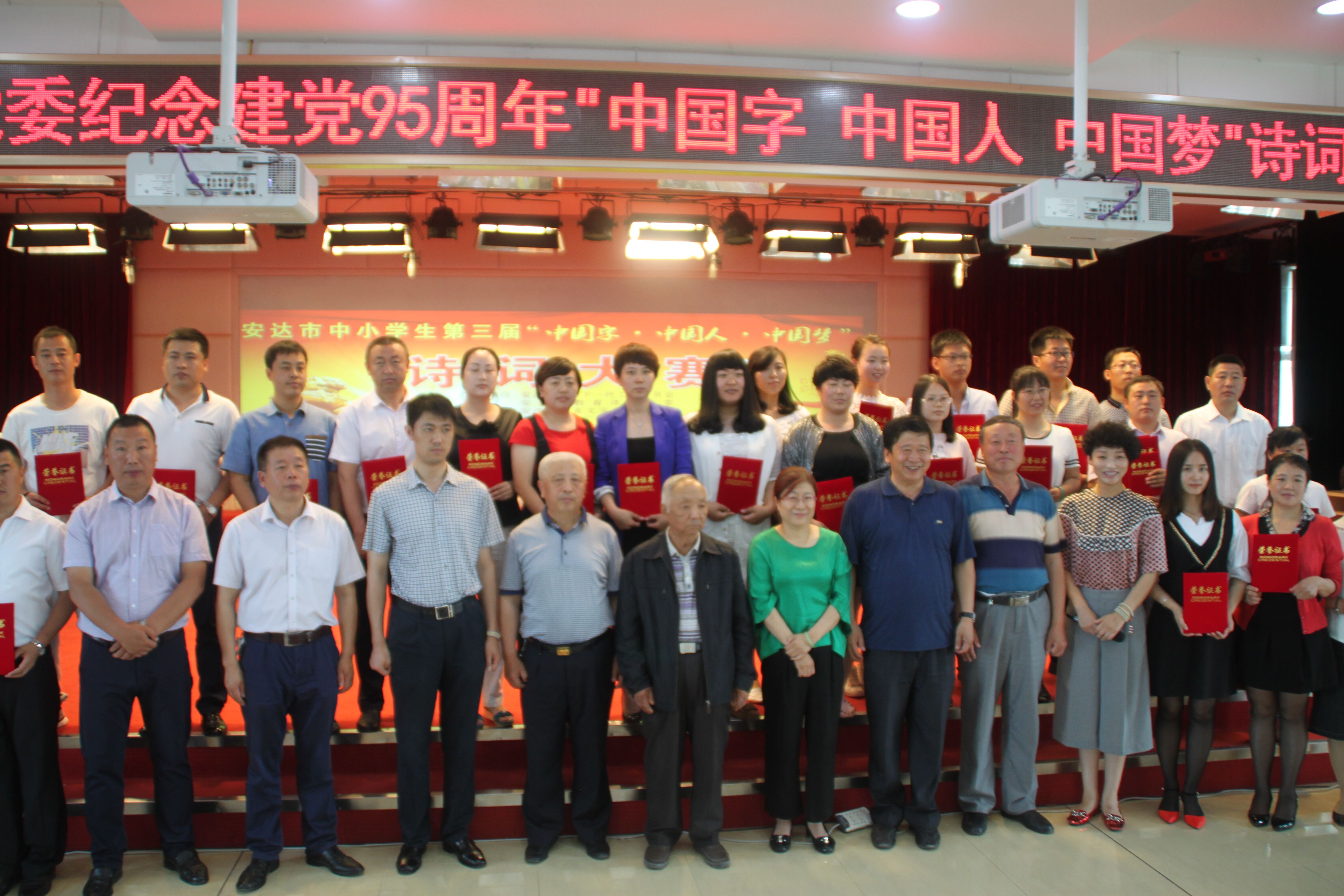 为弘扬中华民族传统文化,培养学生对祖国语言文字的热爱,推动“爱学习、爱劳动、爱祖国”主题教育活动不断向纵深发展,安达市关工委、市教育体育局、市语委、市电视台联合举办了以“感悟汉字深厚底蕴、弘扬中华传统文明”为主题的全市中小学生第三届“中国字 中国人 中国梦”诗词大赛。大赛共设城乡小学组、初中组,城内高中组5个级别,来自城乡46所学校的192名选手同台竞技。