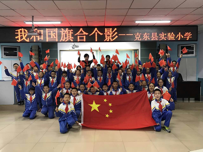 克东县各中小学开展“我和国旗合个影”活动