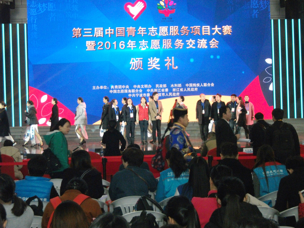12月3日,由中央文明办、共青团中央、民政部、水利部、中国残疾人联合会、中国青年志愿服务基金会共同举办的第三届青年志愿者服务项目大赛活动落下帷幕,来自八五二农场第六管理区的环保志愿者陈通湘获得银奖。据悉,第三届中国青年志愿服务项目大赛是2016年7月开始筹备,2016年12月1日到3日在浙江省宁波市国际会展中心举行,共有全国30个省,市,自治区,中央直属机关,央企等共38家单位的5000名选手参加此次评选活动。全国获金奖100个,银奖400个。团中央书记处书记尹冬梅,水利部副部长,中国残疾人联合会副会长,宁波市委副书记亲临现场颁奖,央视著名节目主持人白岩松担任主持嘉宾。黑龙江省一共获得11个银奖,1个金奖,陈通湘是黑龙江省农垦系统唯一一个进入全国总决赛的选手。