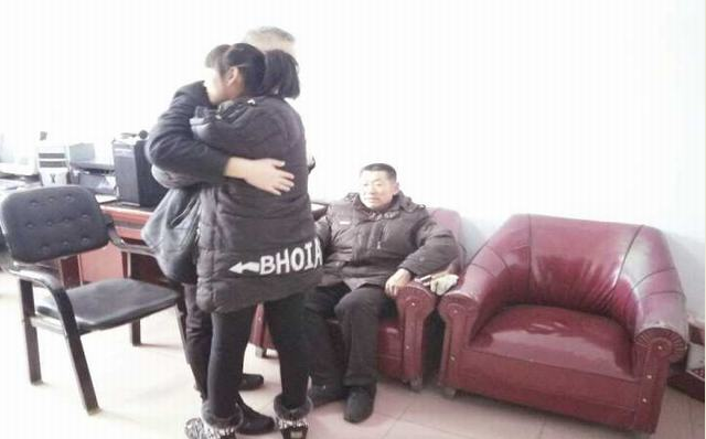 县公安局副局长邸文明满足了特困生杜宇提出的拥抱叔叔的请求,表达了孩子真情致谢的情感和关爱温暖的体现