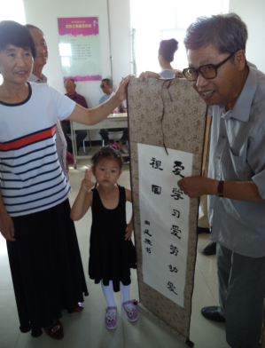 退休老教师王淑华领着5岁的外孙女侯恩溪领取家训条幅时,县关工委常务副主任甘文耀指着条幅问孩子,你懂得这条家训吗?孩子面带笑容地说出了“三爱”内容后还说,姥姥告诉我,要做一个好孩子,从小就要明白“爱学习、爱劳动、爱祖国”的道理,我能做到。