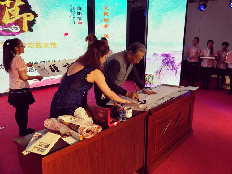 “金秋十月爽,九九话重阳。日月两重归,相映地久长。”“霞披夕阳情无限,霜染秋风叶正红”。秋风送爽,果实飘香。金秋十月,我们又迎来了一年一度的老人节—“九九”重阳节。值此佳节到来之际,由肇州县关心下一代工作委员会、繁荣社区工作站主办,启稚摇篮金话筒口才学校、七色阳光双语幼儿园承办的“九九重阳节、浓浓敬老情”主题义卖活动于10月23日在繁荣社区工作站拉开了帷幕。此次活动得到了大庆日报、肇州电视台、肇州人民日报的大力支持,现场更有关心下一代工作委员会众领导的书画作品现场义卖,筹集的3650元善款全部捐献给需要帮助的孤寡老人们,为他们送去节日的问候与祝福。