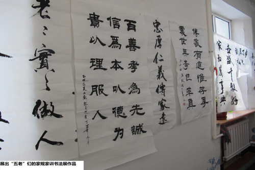 这次书法展共参加人59人,展出书法作品66余幅,一幅幅精美的书法作品,一句句富含哲理的家规家训,催人深思、发人深省,“五老”们认真参观,不时交流心得,引发共鸣。这些作品是由我区各社区关工站的“五老”们创作,他们用生动的笔墨书写,传播尊老爱幼、清廉爱国、诚实敬业精神,既传承了优秀传统思想文化精髓,为家庭教育做榜样,也为传播着社会正能量提供丰润的道德滋养。为全区“五老”做出了榜样。