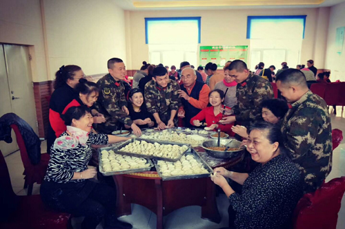 在包饺子过程中,“五老”不时和战士们进行互动,询问战士们平时训练紧不紧张?业余生活如何安排?有没有困难?鼓励官兵们听党话,跟党走,刻苦训练,报效祖国,做党和人民的忠诚卫士。要不忘初心,牢记使命,永远前行在新时代的奋斗路上,祖国和人民将以你们为骄傲!当大妈大爷听说,今年过年部队里没有一人回家探亲,肃然起敬,纷纷为战士们点赞,当场表示官兵们为了老百姓安居乐业,放弃回家和亲人团聚,我们宁可累一点,辛苦一点,也要为他们做点事,只要需要,我们随叫随到!不仅要让消防官兵过年吃上饺子,更要让他们感觉到我们就是他们的亲人,像在家一样欢度新春佳节。
