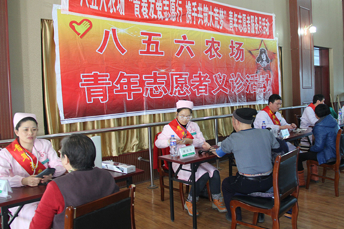 在纪念雷锋55周年的日子里,八五六农场掀起学习雷锋的高潮,农场职工医院党支部开展了“青年友爱志愿行 携手共筑大荒梦”义诊活动。青年医务志愿者走向老年公寓、双老活动中心、超市等人员密集的场所,为老年人进行量血压、看眼睛、测听力、测心率等义诊。并向大家宣讲老年人保健知识。八五六农场职工医院青年医务志愿者的行动,深受农场人们的赞扬。