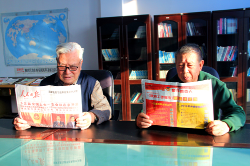 十三届全国人大一次会议在北京人民大会堂隆重开幕。连日来,农垦九三局关工委的五老们,采取了集中收听、收看,分别收听、收看相结合的办法,通过查阅网络、报纸搜集材料和大会小会研讨的形式学习两会精神,大家一边学习一边认真做笔记,大家表示,两会为国家事业的新发展绘制了美好前景,令人振奋,备受鼓舞。同时也为我们下步工作指明了方向。我们要在今后的工作中要学深学透报告精神,立足本职工作,以报告精神为指引,将报告精神贯彻到关爱工作中,扎实推进关爱事业不断上新台阶。