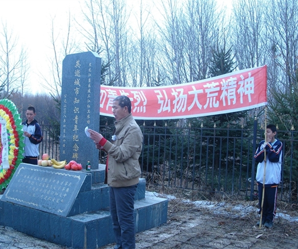 农场关工委高度重视、精心组织,在祭奠仪式上,农场老知青代表徐刚为知青英烈致追悼词。17位知青当年积极响应国家号召,义无反顾的投入到开发建设北大荒的工作当中。虽然英年早逝,但是他们在当时垦荒恶劣条件下不畏艰险,吃苦在前、享受在后、不顾个人安危、忘我工作、顾全大局、顽强拼搏的精神,将会像一面旗帜一样,在红卫高高飘扬。人们不应忘记这段历史,因为知青用青春与激情、用汗水与泪水、甚至是用鲜血与生命,书写了一幅壮丽的画卷,可歌可泣,永远屹立在后来人们的心中。活动教育青少年要将她的精神和事迹代代传承,将红卫家园建设的更加美好。(陈国岭)