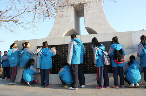 近日,黑龙江省垦区八五六农场中学八年级的的共青团员,在学校团支部书记的带领下,高举中国共青团团旗步行4里路来到青山公园拓荒者纪念碑前认真仔细的阅读拓荒者纪念碑碑文,在碑文中才知道:八五六农场始建于一九五五年,初以公安、铁道兵为主,一批批复转官兵、山东支边青年,知识分子及其他垦荒志愿者从全国各地相继而来,尤以一九五八年复转官兵为标志,拉开了大规模开发建设的帷幕拓荒者们在穆棱河畔的亘古荒原,以超常的革命毅力和无私的奉献精神,克服了不可想象之困苦,大干三伏苦战三九,边开荒、边生产、边建设。为了这片黑土地,他们流血、流汗,献了青春献终身,献了终身献子孙经近半个世纪之艰辛,倾注几代人之心血,终将荒原变良田,青山变城镇。