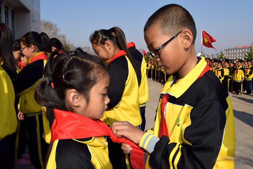 4月28日,为纪念“五四”运动99周年,青龙山农场关工委与学校开展不忘初心跟党走弘扬五四精神入团入队仪式活动,共同见证新团员、新队员入团入队的光荣时刻。全校师生参加。