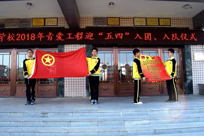 入团入队仪式在嘹亮的国歌声中拉开序幕。全体教师与学生高唱国歌,在歌唱中感受着肩上所负的责任,体味着红色基因的历史和使命。有64名新团员和33名新队员加入了共青团和少先队。老团员为新团员学生配戴团徽,并为新加入少先队的新队员佩戴红领巾,新团员、队员举行了神圣、庄严的入团宣誓仪式,通过宣誓表达了全体同学不忘初心、