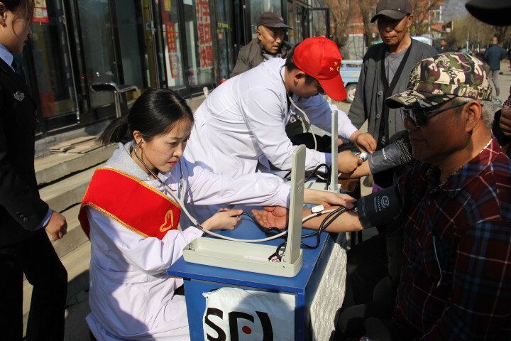 “五四”青年节来临之际,二道河农场关工委联合农场社区服务中心,组织青年医护志愿者、心理健康科普师共8人组成的健康义诊团队,在社区综合楼前为农场老年居民义诊。