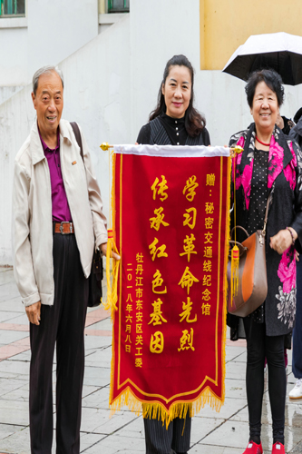 在绥芬河市关工委郭主任等老领导的联络和帮助下,首先,由东安区关工委领导向纪念馆领导赠送了一面表示感谢和象征友谊的锦旗。大家合影后,在绥芬河市委党史办王主任的精彩解说和有序引导下,依次到“绥芬河秘密交通线纪念馆”、中共“六大”集合点遗址和88旅抗日事迹展馆进行了参观和学习。触摸了实物,观看了图片,学习了党史知识,增强了对革命先烈的敬仰之情。然后,又来到边境线,参观了高大雄伟的中华人民共和国国门,感受到新时代祖国的强大和身为炎黄子孙的民族自豪。最后,到绥芬河市博物馆,在年轻解说员的引导下,以抗日英雄少女嘎丽娅为重点,进行了学习和参观。