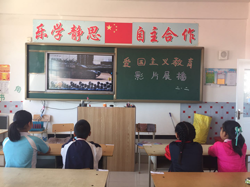 塔子城镇中心小学二年二班观看爱国主义教育影片展播