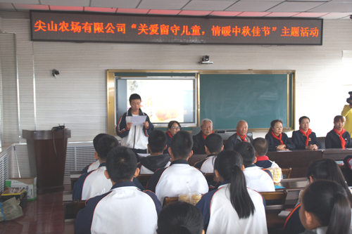 中秋佳节来临之际,为让留守儿童感受到节日的喜庆和家庭的温暖,9月21日,由农场关工委主办的“老少携手关爱留守学生”慰问活动在尖山农场学校举行,此次活动关工委领导和和“五老”代表为给31名留守孩子赠送了红色书籍,并送上了中秋祝福和清香四溢的月饼,表达了对孩子们的节日祝福和良好祝愿,让孩子们感受到了别样的亲情和关爱。