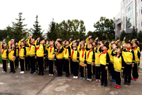 伴随雄壮的国歌,护旗手踏着铿锵有力而整齐的步伐,坚定的走向升旗台,全校师生肃立、端正的注视着冉冉升起的五星红旗,全体少先队员举起右手向国旗敬礼!学校校长做了国旗下讲话,首先学习了习总书记视察建三江时的讲话。习总书记说:“中国人把饭碗端在自己手里,要装自己的粮食,北大荒建设到这一步,不容易,新中国成立70年,沧桑巨变,了不起!中国真正解决温饱问题,这里起了很大作用。”他说:“ 这是习总书记对我们三江人民的关怀、信任、肯定和鼓励。接着号召全校师生一定加深对习总书记讲话的学习、理解。我们一定要不辜负习总书记的厚望,做老师的好好教书育人,做学生的好好学习,掌握好知识,向父辈学习,做一个让习总书记放心的北大荒建设者。在庆祝祖国母亲生日的时刻,我们怀着激情的心情问声祖国您好!”全体师生高声呐喊祖国您好!我们要记住新中国建立的艰辛历程,我们要扛起对祖国建设的伟大志愿,热爱祖国、热情人民,好好学习,天天向上。校长的讲话,进一步把爱国激情内化为具体行动,全体师生立志为北大荒的建设、为实现中华民族伟大复兴、做一个让习总书记放心的北大荒人做出应有的贡献。
