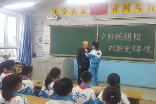 为了加强对青少年的励志教育,使他们远离不良环境的侵蚀,促进青少年健康成长,10月29日,拜泉县关工委副主任马志英组织拜泉镇关工委常务副主任高永久等“五老”来到育英小学,与学生一起开展了“夕阳托朝阳 双阳更辉煌”主题班会活动。