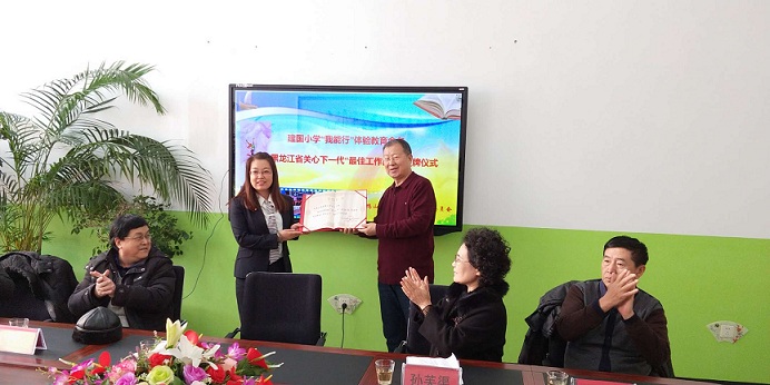 最近,省关工委命名24个项目为黑龙江省关心下一代“最佳工作品牌”,其中有我市尖山区建国小学“我能行”体验教育。12月14日上午,市关工委常务副主任张英杰、副主任兼秘书长盛军、市关工委副主任孙芙蕖、办公室副主任赵娟参加了转发证书仪式。仪式由尖山区关工委主任高国平主持,尖山区教育局和建国小学的领导及相关人员参加了仪式。仪式上,孙芙蕖副主任宣读了省关工委关于命名黑龙江省关心下一代“最佳工作品牌”建国小学“我能行”体验教育的决定。
