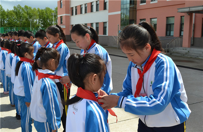 5月31日,勤得利小学关工小组在学校操场组织举行了隆重的新队员入队仪式。