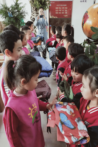 10月24日,由区关工委、银河街道关工委、国家二级心理咨询师刘老师、蓝冠英才幼儿园园长、教师及7名小朋友组成的志愿者团队一行来到先锋中心幼儿园开展关爱活动。在前期了解困境儿童基本情况的基础上,心理咨询师刘老师与11位小朋友们进行了自我介绍、才艺展示、畅谈梦想等课堂互动,进一步了解到每位小朋友的所需所盼及心理状况,为下一步有针对性的心理辅导打下基础。蓝冠英才幼儿园师生带来了书籍、玩具、衣服、鞋子等物品,由小朋友亲自赠送给这里的困境儿童,两个幼儿园的小朋友们在一起互动游戏,开心快乐的玩耍,很快融合在一起。同时,志愿者团队与先锋幼儿园交流了愿意长期合作,开展幼师支教、儿童心理辅导等帮助困境儿童健康成长的意愿。