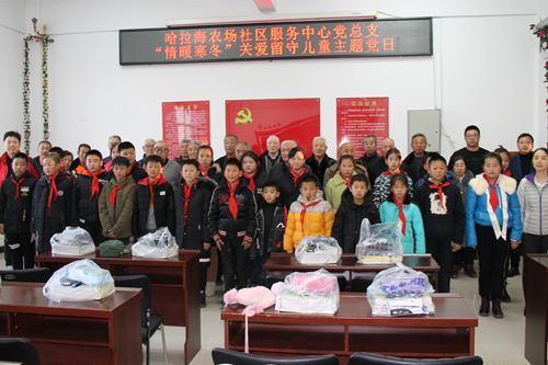寒冬到来之际,哈拉海农场关工委、社区党总支牵挂着父母常年在外省市打工的留守儿童,他们中间大部分儿童家庭生活较为困难,由爷爷奶奶常年陪伴,而爷爷奶奶又多数身体有病,造成这些留守孩子生活学习上的种种困难。