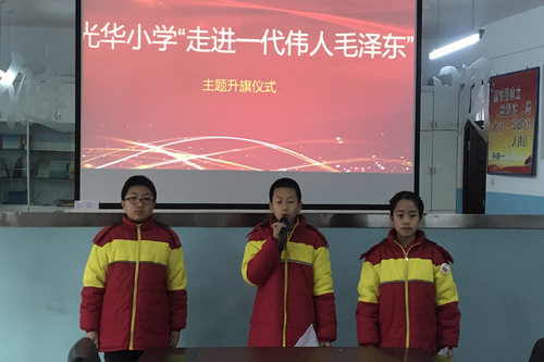 2019年12月23日,牡丹江市光华小学举行纪念毛泽东主席诞辰126周年升旗活动。仪式上,少先队大队长带领大家回顾了毛主席的丰功伟绩。大队委员声情并茂的朗诵了毛泽东诗词。深切缅怀毛主席为民族独立、人民解放和国家富强、人民幸福作出的不可磨灭的贡献。毛主席坚定的家国情怀、革命意志和优良传统,值得我们永远缅怀、永远传承、永远追随。