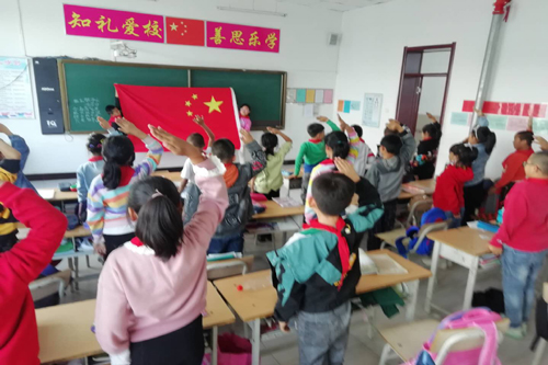活动前,镇关工委、学校精心策划,认真准备,详细布置。28日上午,全校10个班统一组织召开了“我和我的祖国”主题班会,班主任通过图片、文字、微课、短视频等形式,向学生有声有色地讲解了国旗、国徽、国庆节的含义及由来,并通过微课、短视频、短篇等,使学生了解中国的苦难历史及为建立新中国而浴血奋战的风雨历程,缅怀为新中国的成立而牺牲的先烈们,加深了对国庆节的深刻认识。会上,各班还开展了“向国旗敬礼”的活动。班会结束后,少先队大队部组织中高年级开展了《少年强则国强》演讲比赛”和《爱我中华,同唱国歌》合唱大赛等活动。同时,幼儿园组织小朋友开展了认识国旗的活动。一张张开心“向国旗敬礼”的场景,一阵阵慷慨激昂的演讲,一次次激昂悦耳的国歌声,深情地表达着孩子们对祖国母亲的美好情感和祝福。