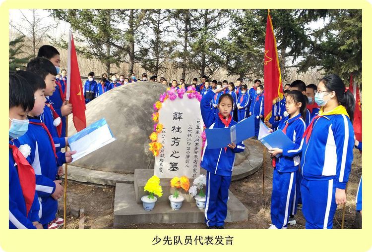 创业小学开展了以“祭英烈?学党史?做新人”为主题的系列教育活动。学校利用国旗下讲话、班队会时间,组织学生“学习党史 缅怀先烈”,让学生在了解传统节日的同时,追随红色足迹,缅怀革命先烈。同时到“五把铁锹闹革命”带头人薛桂芳的陵墓前开展了“祭英烈?学党史?做新人”清明祭扫活动。