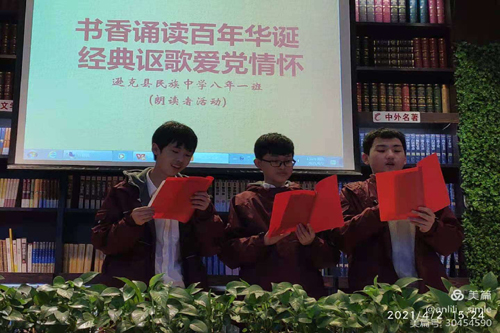 4月6日,逊克县民族中学关工小组组织八年一班在新华书店举行“书香诵读百年华诞 经典讴歌爱党情怀”朗读者活动。迎接和庆祝中国共产党建党100周年,深刻感受百年来党和人民走过的光辉历程。