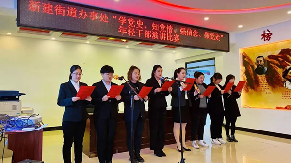 4月25日下午,昂昂溪区新建街道办事处关工委,举办年轻干部主题演讲比赛。在二楼党员活动室,来自街道社区的8名35岁以下年轻干部,紧紧围绕“学党史、知党情、强信念、跟党走”主题开展演讲。