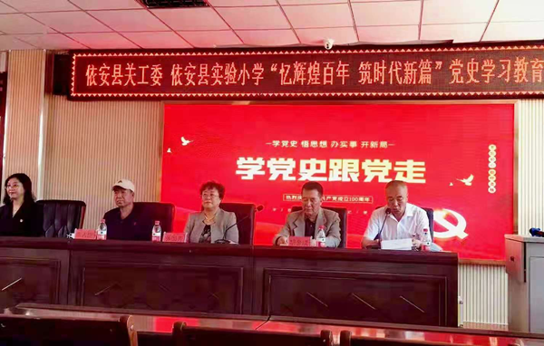 为贯彻落实习近平总书记在党史学习教育动员大会上的重要讲话精神,引导青少年从小树立“知史爱党”的高尚情怀,传承红色基因, 5月21日下午,县关工委常务副主任张国芳带领秘书长胡金城、副秘书长高占臣,应邀到县实验小学与广大师生共同进行了一次党史再学习、再教育活动。