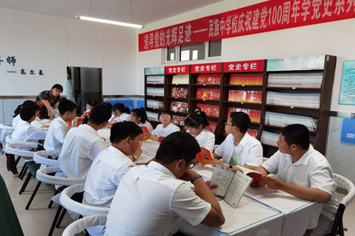 随着党史学习教育活动的深入开展,学生们对党史学习的热情日益增长,逊克县民族中学校关工小组与图书室管理教师在学校图书室开创了追寻党的光辉足迹----党史学习教育专栏,为孩子们学习党史提供了不出校园的理想空间。