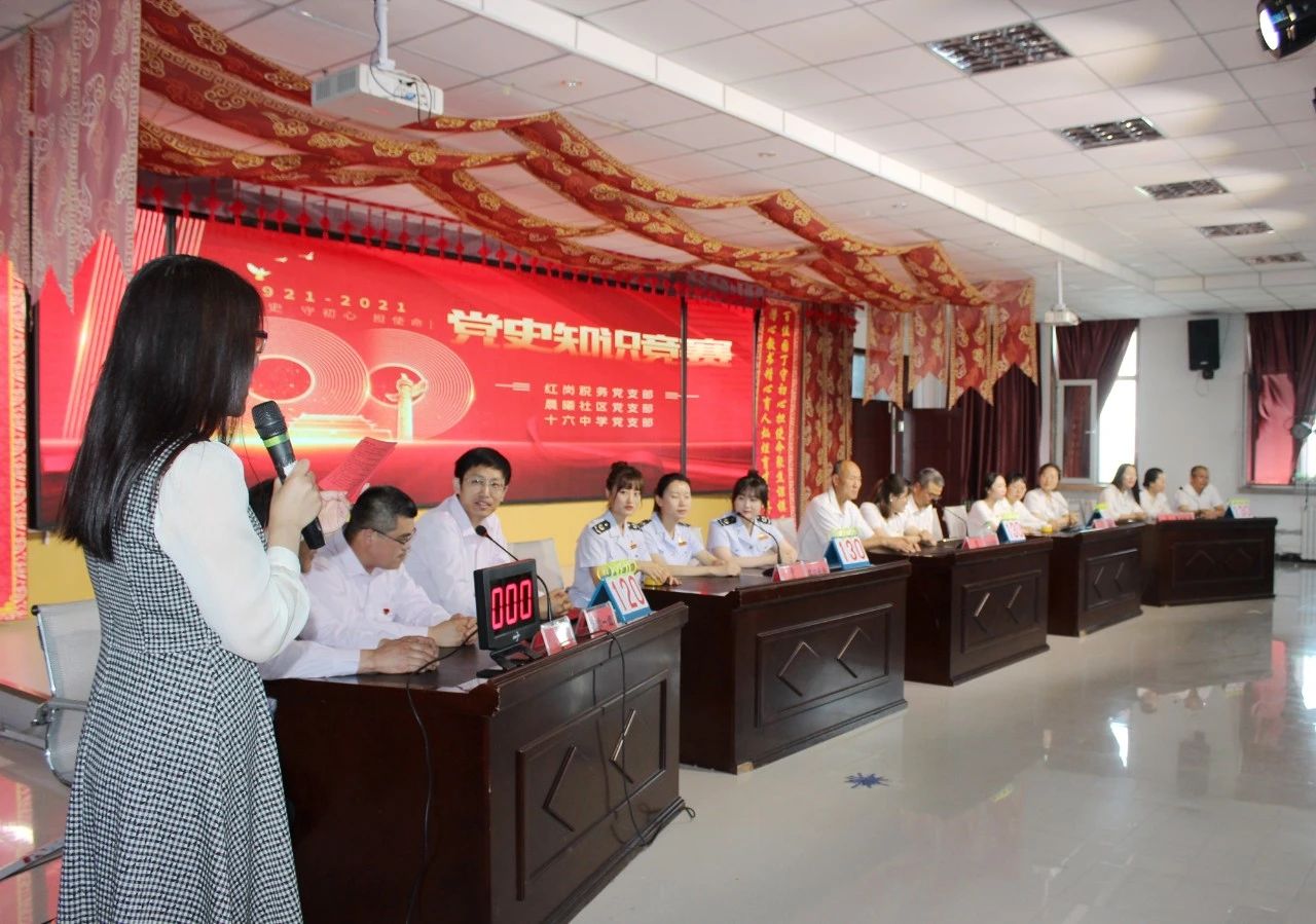 近日,红岗区税务局党支部、晨曦社区党支部和十六中学党支部的党员及部分师生欢聚一堂,举行“学党史、守初心、担使命”党史知识竞赛,共同回顾党的光辉历程,讴歌党的丰功伟绩,抒发爱国之情,为伟大的中国共产党庆祝百岁生日。