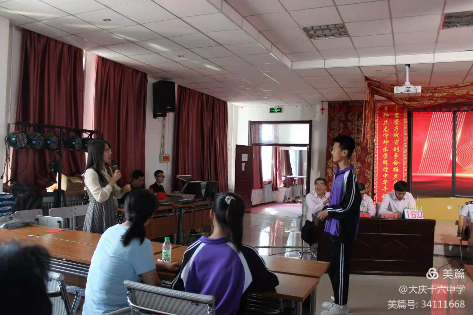 比赛分为必答题、抢答题和选答题三个环节。选手们用丰富的党史知识,精彩的答题表现,展现了扎实的理论功底和浓烈的爱国情怀,赢得了现场观众热烈的掌声。观众和学生参与的游戏答题环节,将现场气氛一次次推向高潮。经过激烈角逐,十六中学第一教学党小组和红岗区税务局党支部获得一等奖,十六中学第二教学党小组、行政综合党小组和晨曦社区党支部获得二等奖。最后,十六中学党支部书记马玉林作了总结讲话。