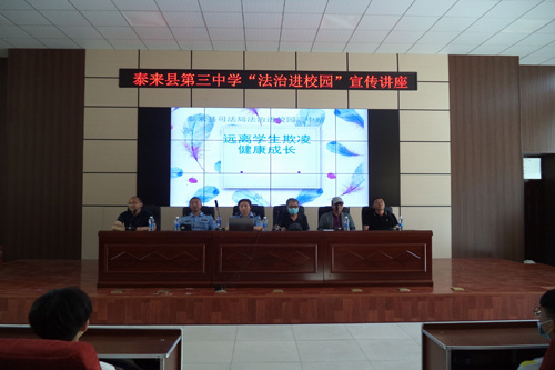泰来县司法局闫桂芳主讲,她从法律和案例的结合上对讲座主题《远离学生欺凌 健康成长》,进行了全面、深刻、精彩地阐述。她讲解语言生动、案例鲜活,图文并茂、通俗易懂,受到学生们欢迎。同学们说,听了老师的讲座很受教育,学到了许多法律知识,今后要远离学生欺凌等不良行为,做一个学法、守法的好学生。两校领导表示,要进一步贯彻落实县关工委提出的“两法”进校园,开展“三个一”活动,加强对“两法”学习宣传教育。按照《国务院未成年人保护工作领导小组关于加强未成年人保护工作意见》的要求,深入开展未成年人法制教育,提升学生法治意识,强化未成年人思想道德引领。健全学校保护制度,防范学生欺凌发生,为学生身心健康成长创造良好的法治环境。