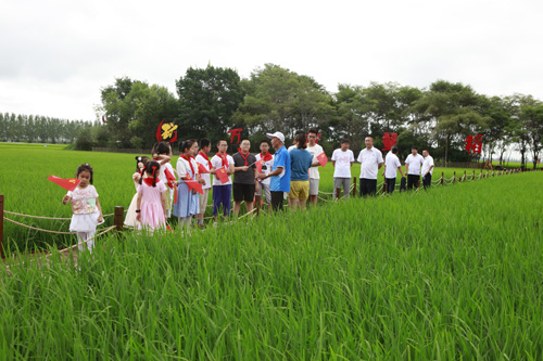 7月20日,八五六分公司第四管理区关工领导小组带领中小学、高中学生,走进万亩蟹稻田,关工委“五老”讲北大荒的故事。