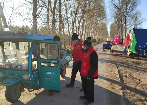 蒲峪路镇齐心村“五老”刘忠生、汤宝臣、汤宝友等人积极响应党和政府的号召,主动作为,冲在战疫的一线。他们在村党支部书记、关工小组长陈洪会的带领下,协助村委会与村组干部一起驻守在防疫检查站。不畏严寒,不惧风雪,每当看见有村民和车辆要路过卡点时,他们都上前详细询问对方从哪儿来,到谁家去,扫码测温、问问打没打疫苗,并做好详细登记,劝阻无关外来人员进村。