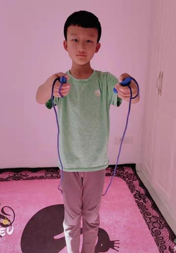 不能在学校上体育课,不能在学校上大课间,在家里我每天都要锻炼身体,小哑铃、蹦床都是我们的锻炼器具。