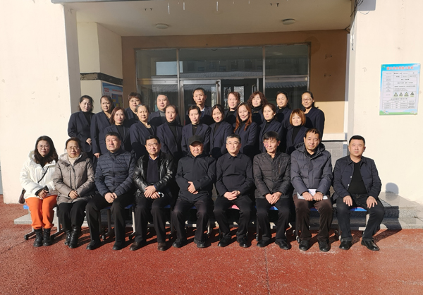 调研活动结束,市关工委领导、市教体局领导与特殊教育学校的教师合影留念。