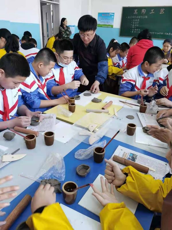 在双休日全县各中小学校关工组织引导学生到全省关心下一代教育基地暨县青少年教育实践基地—勃陶文化产业园参观黑陶工艺品,有上千名青少年学生亲自动手制作陶艺品并展出;