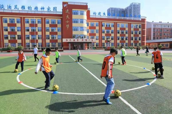 绿茵足球社团在“双减”后,利用课余时间,积极开展足球校园文化的传播,有着广泛的普及面和良好的梯队建设,现有队员100多人,为学校足球运动持续发展奠定基础。社团拥有1200平方米的人造草坪场地,为足球队员的培养提供保障。设置了运球绕桩游戏,基础动作训练,六人制足球比赛等项目,并组织开展的“四五年级联赛”取得良好效果,学生参与度越来越高,曾在全县“国家级足球基点校”比赛中荣获男子组第三名,董新刚老师被评为优秀教练员。优秀