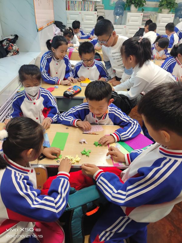 折纸是孩子们非常喜爱的一项手工活动。这一活动可以培养孩子的动手动脑能力、记忆力、想象力、创造力,而且在材料、场地等方面几乎没有任何限制,容易开展,且人人可学,人人爱学,乐趣多多。社团成立以来,已经积累了许多精美的折纸作品。折纸社团在学习过程中结合养成教育,让每个学生都准备一件喜欢的手工,送给喜欢的朋友,传播爱心,争做校园文明礼仪小使者。