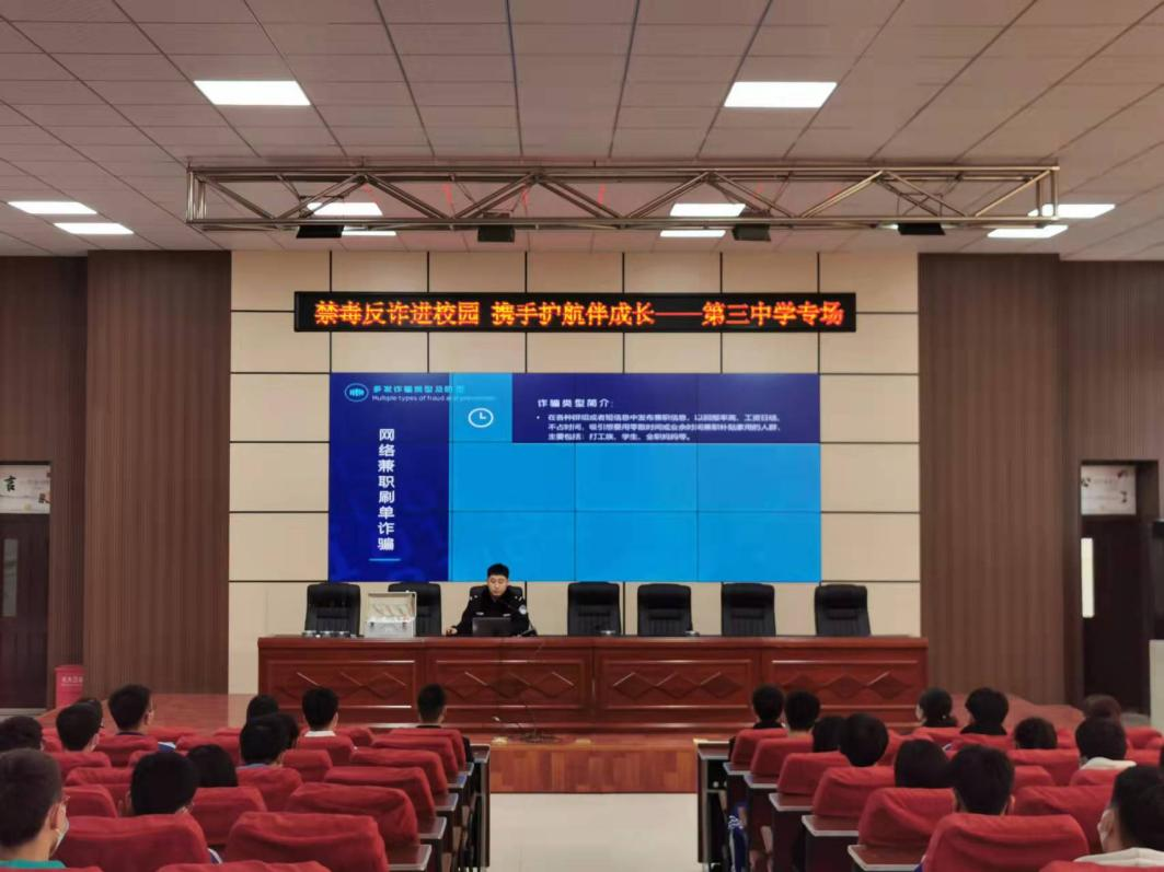 泰来县三中为促进青少年禁毒反诈工作深入开展,发挥青少年在毒品预防教育和电诈防范宣传中的主阵地作用,3月2日下午,学校同县公安局、检察院、法院相关领导、民警联手深入校园开展禁毒反诈宣传活动,给学生们上了一堂生动的“法制教育课”。