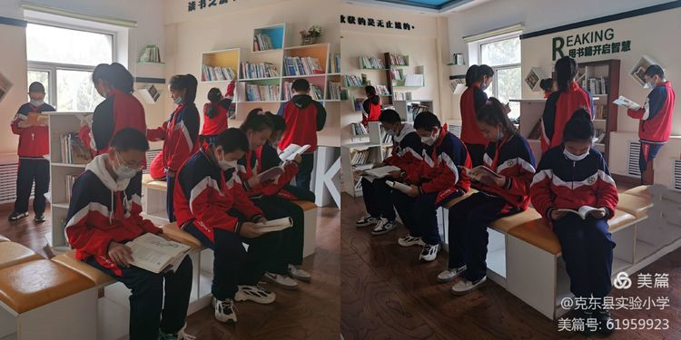 为方便孩子们阅读,实验小学图书室每天对全校师生开放使用,每个班级设有图书角,教学楼过道上设置流动书吧,综合楼内还有开放式书吧。在实验小学的校园里,涌动着一股读书的热潮。进入实验小学,随处可见捧书静读的孩子,良好的校园文化建设培养了学生的阅读习惯。