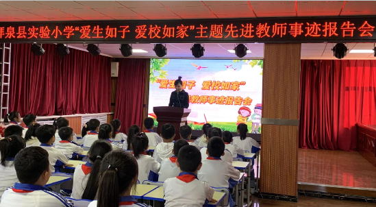 为了激励广大教师见贤思齐,提升职业素养,打造一支政治思想素质高、师德高尚、富有爱心、学识精深、人民满意的新时代教师队伍,使广大教师崇尚以严慈相济的爱,让学生能“亲其师”而“信其道”,做一名爱心伴学生的教育事业忠诚实践者和“四有”好老师,5月5日,拜泉县实验小学关工领导小组举办了以“爱生如子,爱校如家”为主题的先进教师事迹报告会,全体班主任、三年三班全体学生参会。