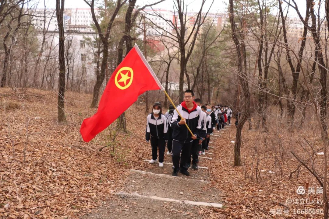 2.萝北县共青学校举行新团员入团仪式后,团委全体教师和同学们进行了“重走垦荒路,再燃垦荒情--喜迎建团100周年”徒步行实践活动。