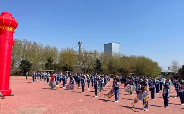 全校师生齐聚操场,进行风筝比赛活动开幕仪式。中心学校主要领导致辞,希望同学们可以通过此次活动,健康快乐成长,养成热爱生活的良好品质。