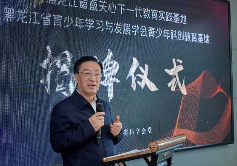 省关工委副主任付晓波在仪式上发表了讲话,他对省直关工委近年以来的工作给予了高度肯定,并对省科协领导和科协关工委对关心下一代工作的高度重视给予赞许。他指出:一是科教兴国要从小引导、从娃娃抓起,在青少年中大力弘扬科学精神、科学家精神是非常重要的,对他们将来在爱党、报国、敬业等方面起到潜移默化的教育影响作用,这方面省科协还要发挥科技界人才济济的优势给予大力支持。各级关工委要不断加大工作力度,在国家科教兴国重要战略中,发挥出关工委的力量。二是要利用阵地,讲好科学家故事。借助省科学会堂“科技工作者之家”的资源优势,既要讲好国家科学家的故事,也要讲好我们省科学家的故事,让科学家精神在广大青少年,也包括省直机关广大青年干部职工及家庭中产生广泛的影响力。这对全省关心下一代工作也将会起到极其重要的作用。三是要进一步总结经验,各单位要通力合作,把省科学会堂关心下一代教育实践基地打造成全省乃至全国关工系统教育基地的典型,为黑龙江省关心下一代工作品牌增光添彩。