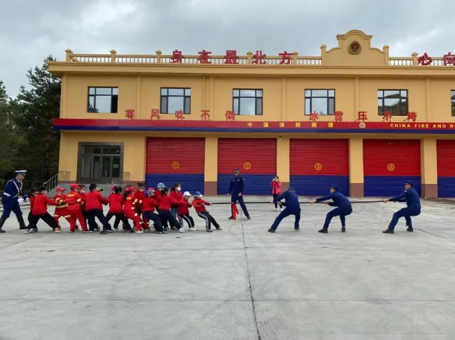 6月1日,北极镇中心校部分师生来到消防站,与消防官兵一起过节,亲身感受指战员顽强的工作作风和严谨生活态度,学习消防知识,培育革命英雄主义精神。
